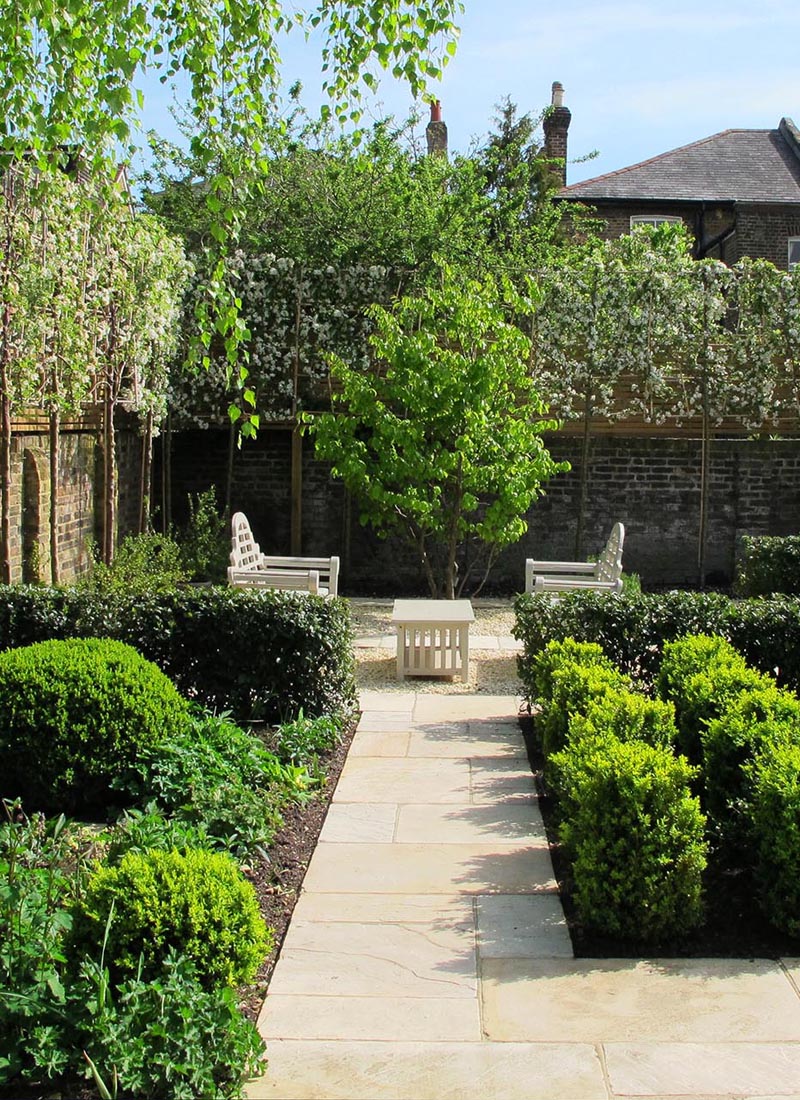 The garden needed to complement the existing outdoor dining terrace which had recently undergone renovation, working as an extension of the property while creating its’ own entity. Existing materials such as the Lutyens benches and Sandstone paving were worked into the design to ensure a visual and physical continuity within the space.