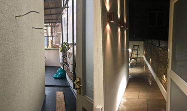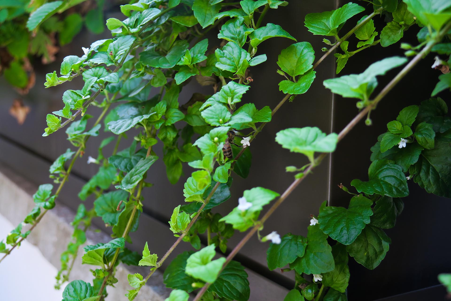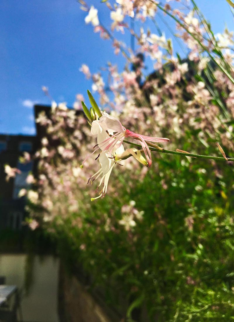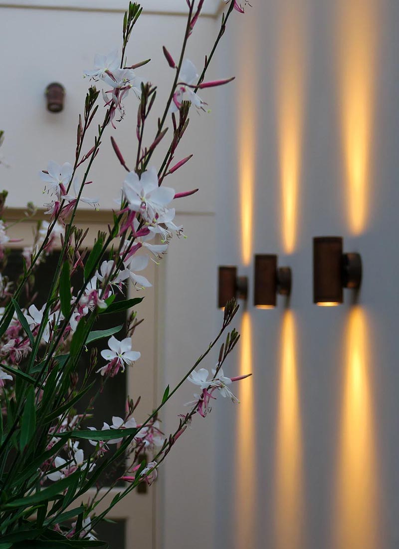 It was important to impart year round impact to the entrance so we introduced large, bespoke statement planters, specimen trees and contemporary brass wall lights. The silhouettes of the multi-stemmed trees combined with evergreen underplanting ensured an elegant and dynamic effect through the winter months. The spring flowering perennials and autumn flowering Heptacodium were covered in bees in their first year - testimony that the neighbourhood pollinators had a new source of early and late forage as intended!