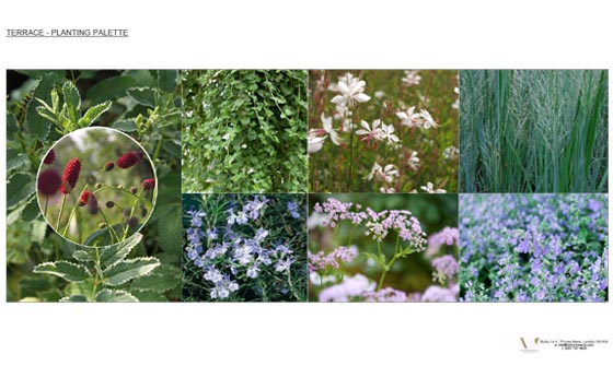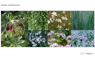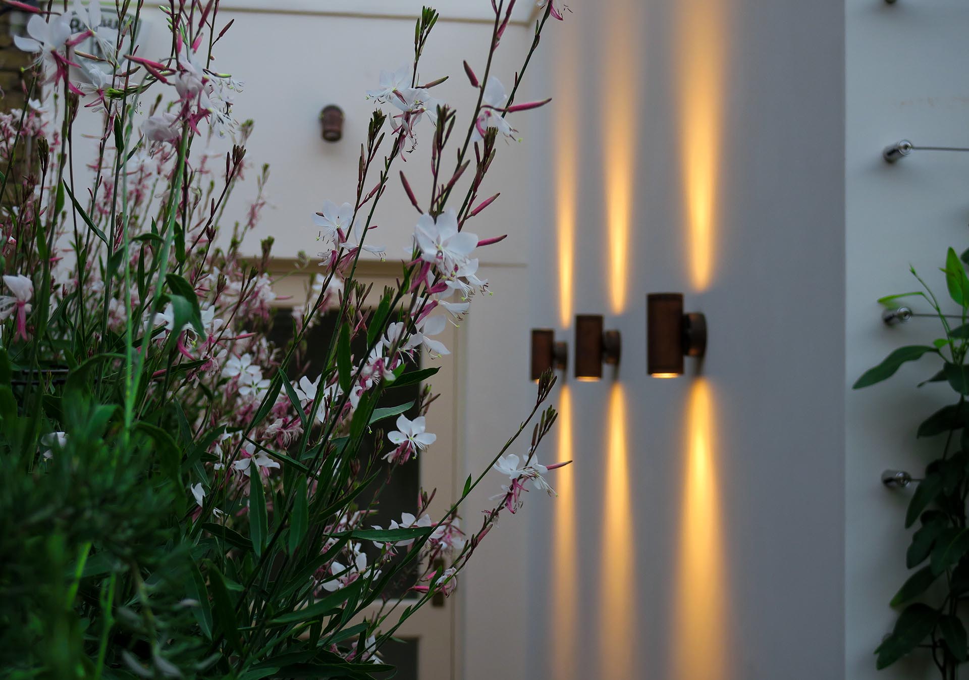 Low maintenance and durable porcelain paving, bespoke powder coated planters and sumptuous copper light fittings lend the space a luxurious and tranquil atmosphere. High impact, successional planting, softens the space and introduces seasonal bursts of colour and scent.