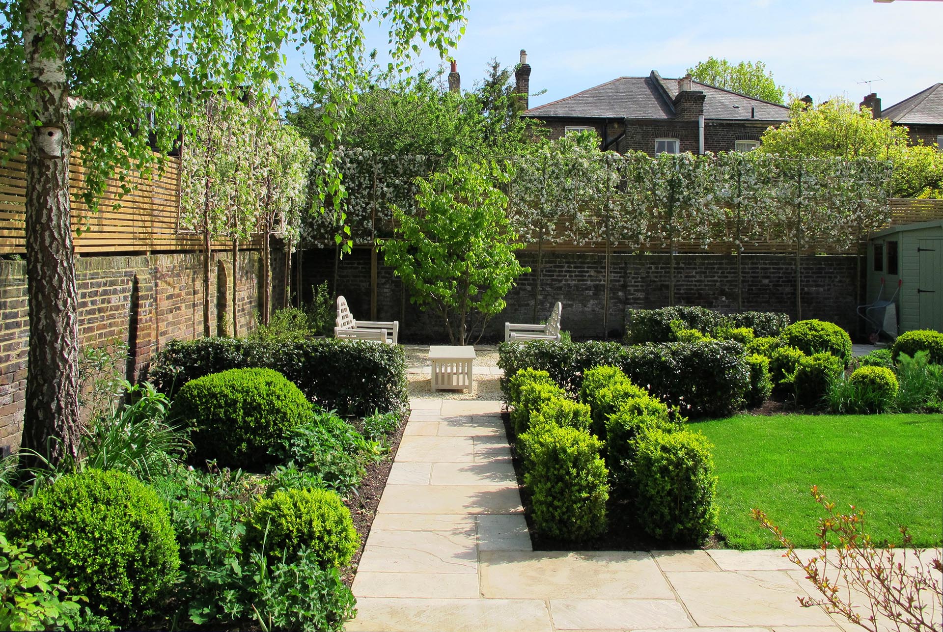 For the client, a keen and proficient plantsman, soft landscaping was particularly important. The planting scheme was developed to provide year round interest with evergreen structure and perennial bursts of colour and scent. A backbone of flowering shrubs such as Vibernum tinus and Buxus sempervirens combined with wonderful structural plants full of interesting form, texture and shape, like Panicum virgatum ‘Heavy Metal’ and Parottia persicaria were carefully woven together with a palette of flowering climbers, perennials, annuals and pleached trees to ensure year round interest and wonderful seasonal displays.